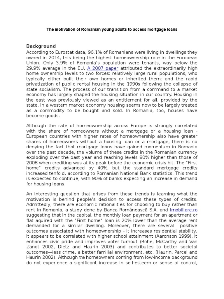 Project Summary Romania Mortgage Loan