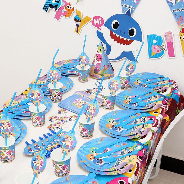 Baby Shark Party Supplies Kids Birthday Decoration Straws Cup Banner Balloons Cake Bags Gifts Theme Ideas Tableware Set 195pcsa52102