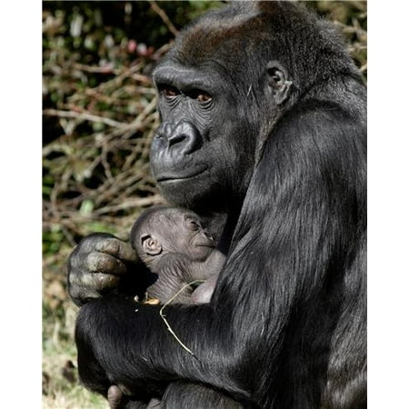Laminated Poster Baby Gorilla And Mother Glossy Poster Monkey Chimp Ape Decor Poster Print 11 X 17