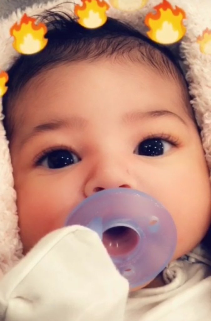 This weekend kylie jenner gave fans an update about stormi webster by sharing two super cute photos of her baby daughter. Kylie jenner took to snapchat on wednesday with yet another precious photo of her 1 month old daughter stormi webstersnuggled in a light pink sweater onesie baby stormi is shown. Kylie has shared a few pics of stormi over the past few weeks.