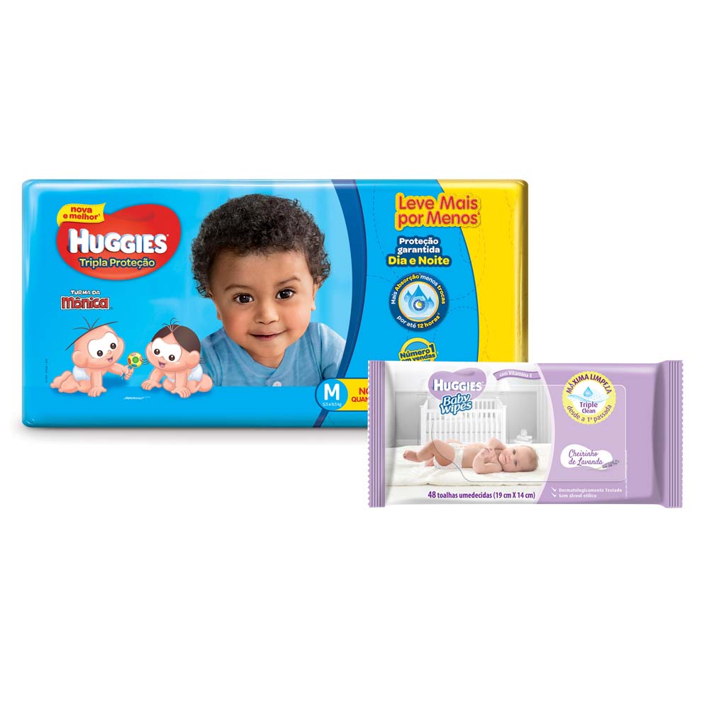 Kit 3 Fraldas Huggies Mega M 3 Lencos Umedecidos Baby