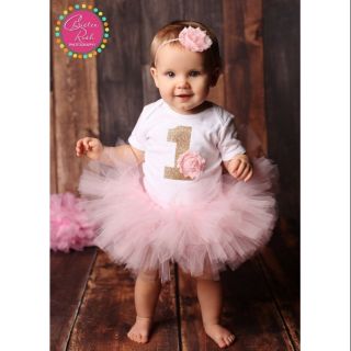 Pink And Gold Minnie Mouse One Year Birthday Tutu Outfit For Baby Girls