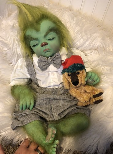 Ooak Reborn Art Doll Baby Grinch Alternative Creepy Late Christmas Movie Prop