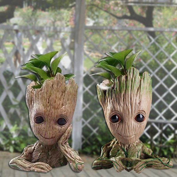 Pinsjar 15cm Kawaii Polyresin Flowerpot Tree Baby Groot Succulent Planter Cute Green Plants Flower Pot With Hole Pen Pot Best New Year Gifts For Kids
