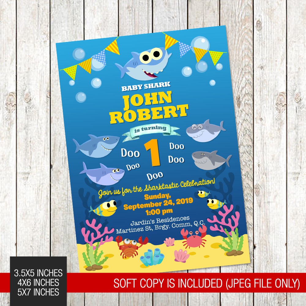 Diy Print Custom Girl Boy Birthday Baby Shark Doo Doo Designs Party Invitations