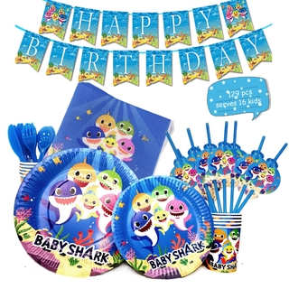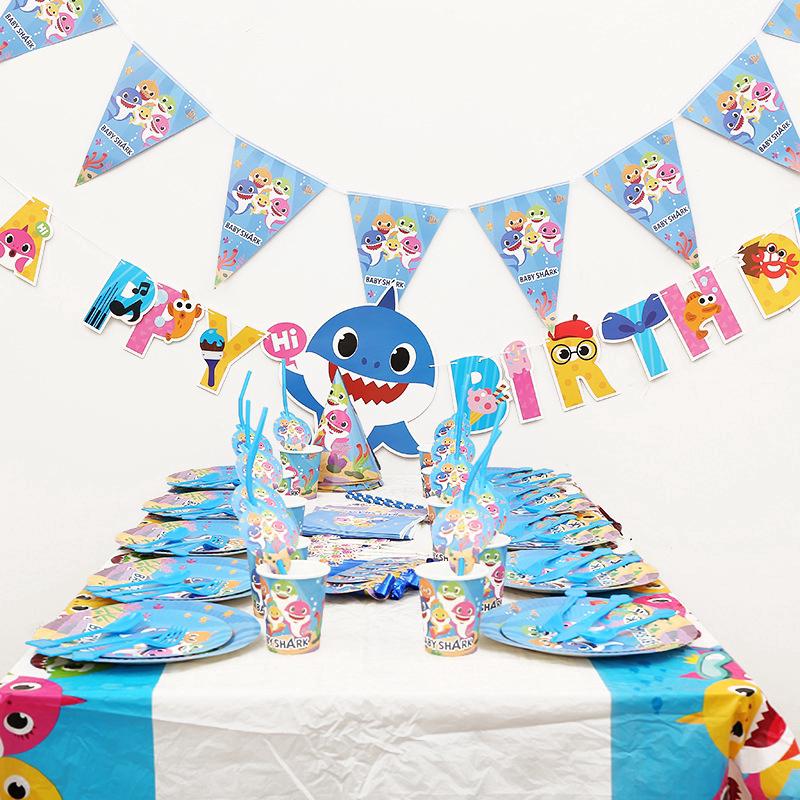 Baby Shark Birthday Party Supplies Decorations Party Banner Hat Cup Plate Straw Toothpick Souvenir Bag Tablecloth Spoon Kka6974