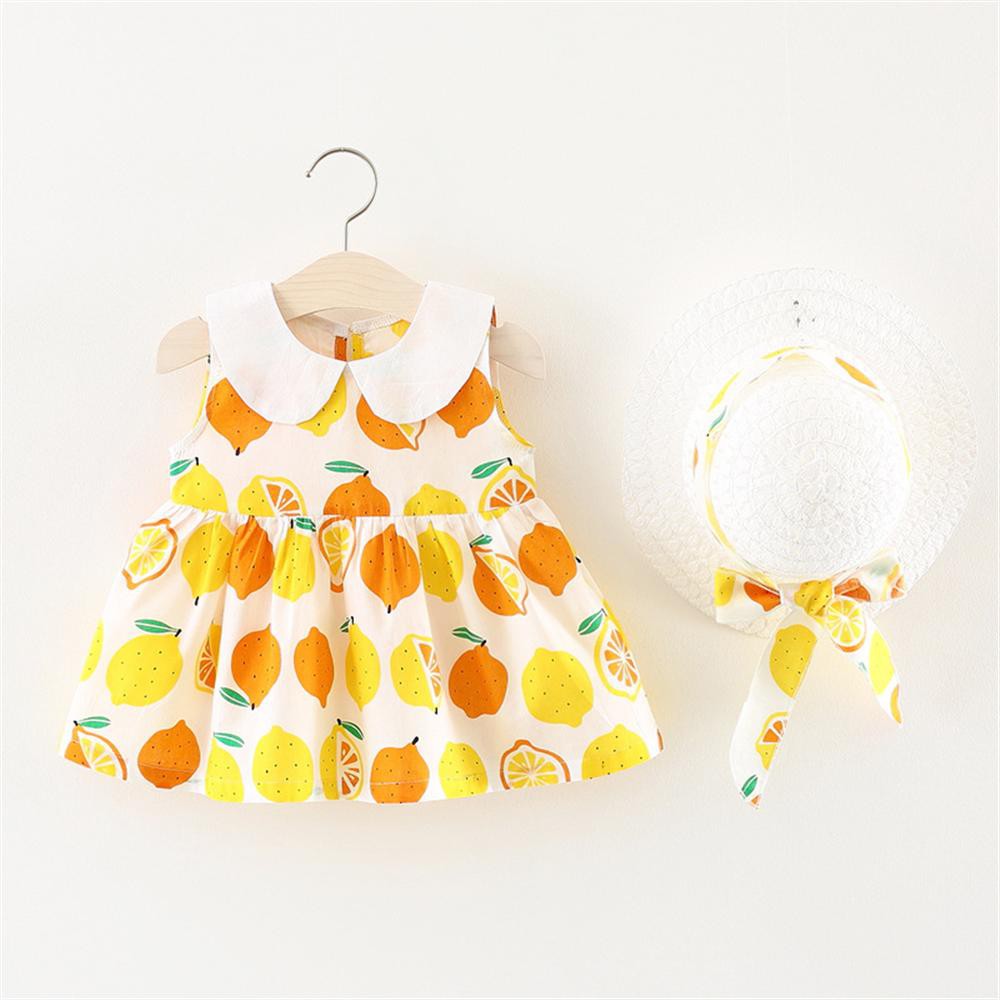 2018 Summer New Baby Clothes Flower Printed Lemon Baby Dress Cartoon Baby Girls