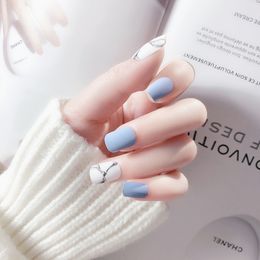 Pure Light Blue Matte Fake Nails Medium Flat 24pcs Frosted Acrylic Pre Designed Nail Tips Easy Diy Finger