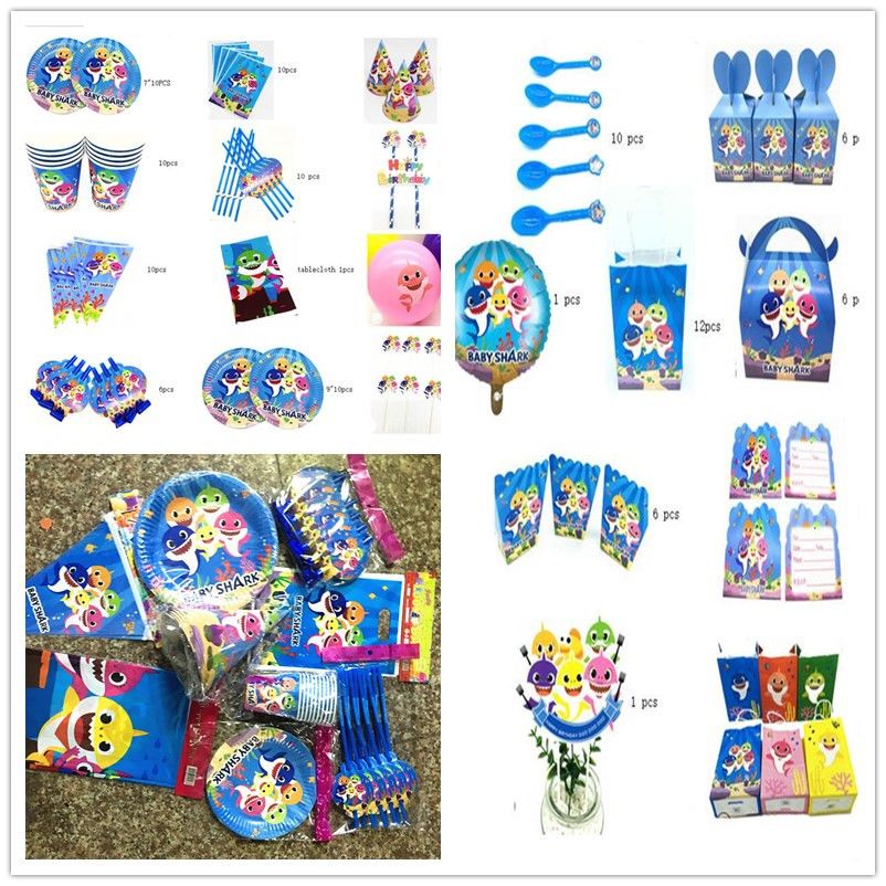 Baby Shark Birthday Party Supplies Decorations Party Banner Hat Cup Plate Straw Toothpick Souvenir Bag Tablecloth Spoon Kka6974 Decoration For A Party